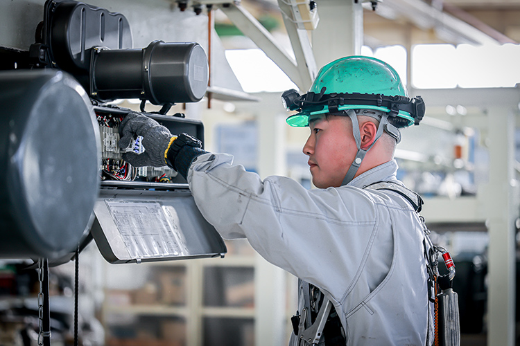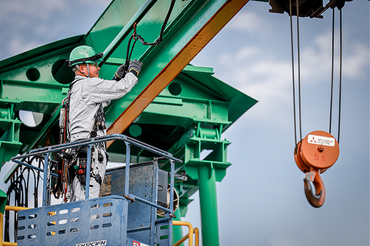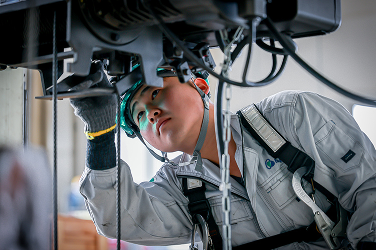 産業用クレーンの点検・修理・改造を通じて、安全で効率的な設備運用を支える仕事を行っています。